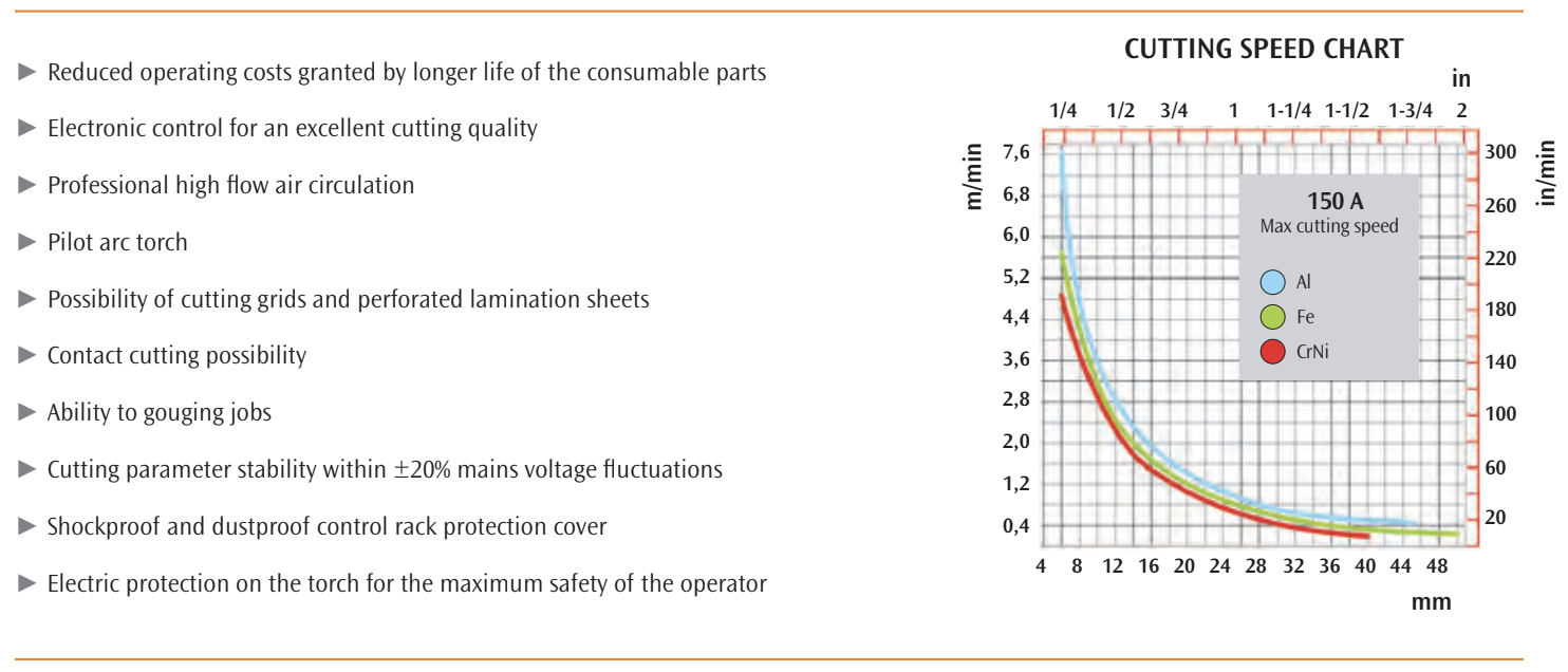 - Equipped with a display for the digital control of all the parameters, it grants the highest cutting quality at high speed by means of SK165 HPC HighPerformance-Cutting technology torch, which combines the concentrated cutting beam to high power.