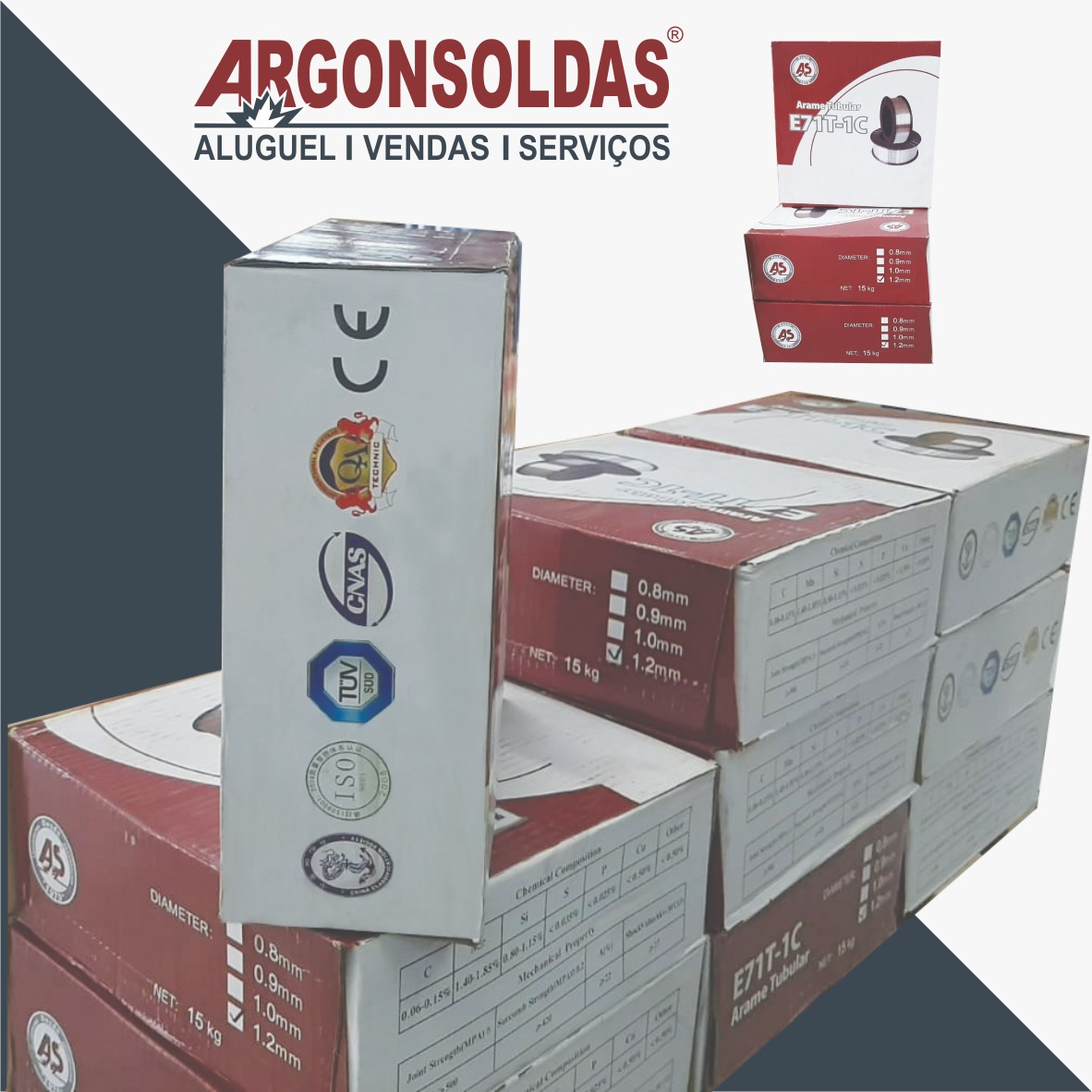 ARAME TUBULAR AWS A5.20 E71T-GS ARGONSOLDAS 0,8MM 1KG