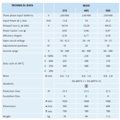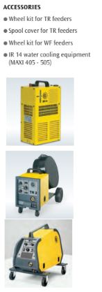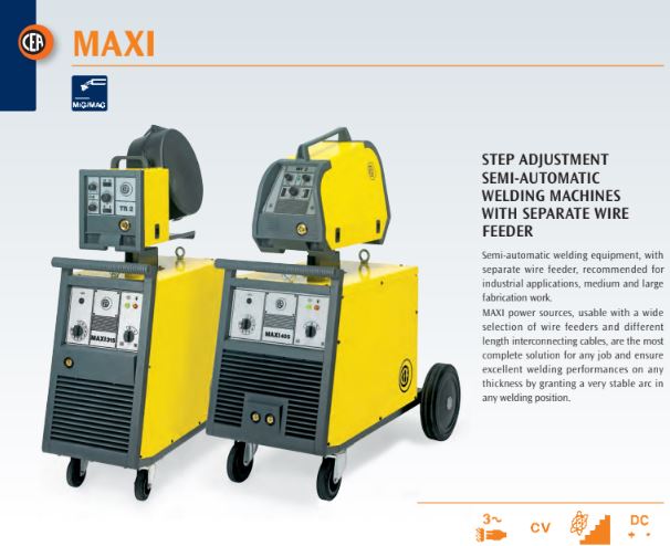 - As soldadoras da série MAXI, podem ser equipadas com vários tipos de cabeçote-alimentador e vários comprimentos de cabos de interconexão fonte-alimentador, representam uma resposta completa para exigências diferentes de utilização e garantem excelentes performances de soldagem em todos os materiais de várias espessuras garantindo sempre um arco estável em todas as posições.