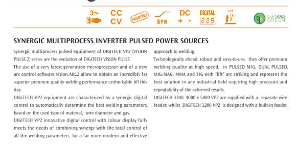 - DIGITECH vision PULSE equipments, fitted with an innovative synergic digital control,